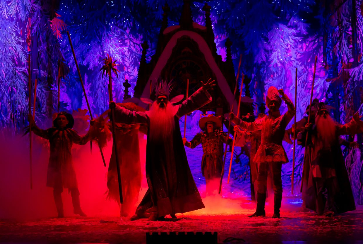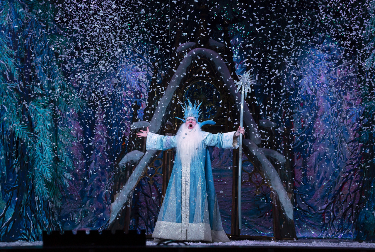 Полный волшебного очарования заснеженный лес возникает перед зрителями, как только откроется занавес.