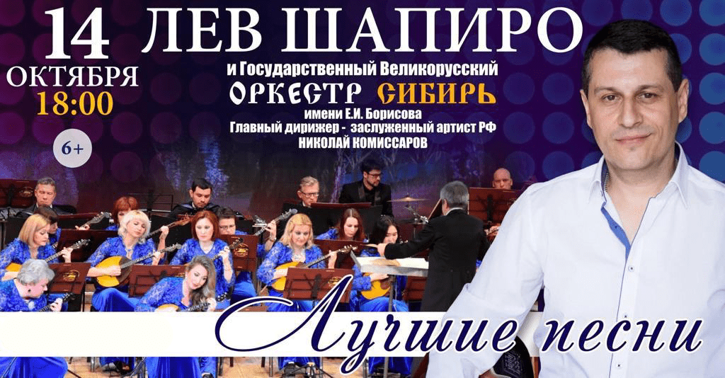 Совместная программа исполнителя, поэта и композитора, Льва Шапиро и Государственного оркестра «Сибирь» им. Е.И. Борисова. Дирижер - заслуженный артист России Николай Комиссаров.