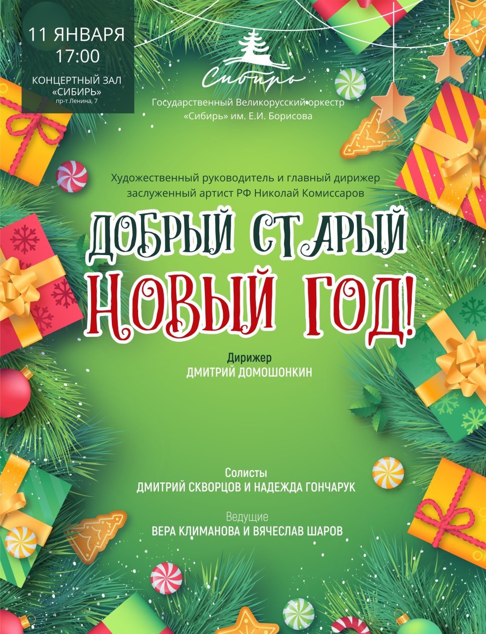 Концертная программа этого вечера позволит вам насладиться великолепной музыкой, национальным колоритом, художественным вкусом и артистизмом, ощутить их характер в звучании Государственного оркестра русских народных инструментов «Сибирь» и погрузиться в волшебную атмосферу зимнего уютного вечера. Это то, что нужно для праздничного настроения в преддверии Старого Нового года!