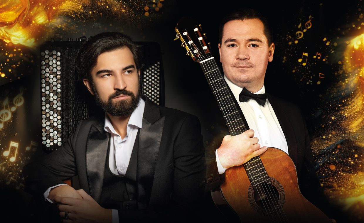 На сцене филармонии выступят яркие молодые музыканты, лауреаты всероссийских и международных конкурсов Дмитрий Мурин (гитара) и Олжас Нурланов (баян) в сопровождении симфонического оркестра ГФАК под управлением дирижера Дмитрия Лузина.