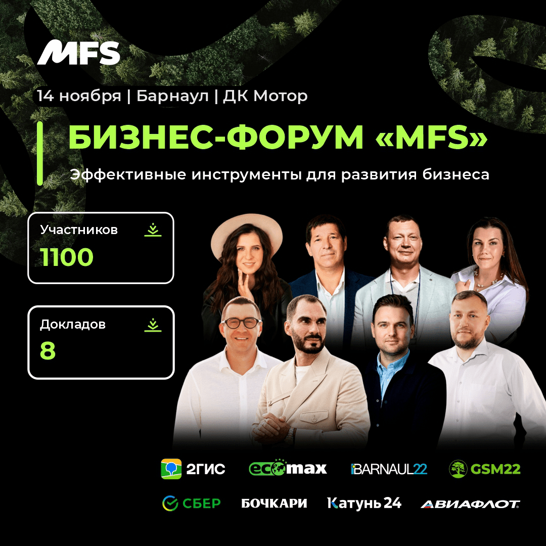 Не упусти возможность стать частью масштабного события Барнаула для предпринимателей — бизнес-форума MFS «Эффективные инструменты для развития бизнеса», на котором соберется более 1000 предпринимателей Сибири
